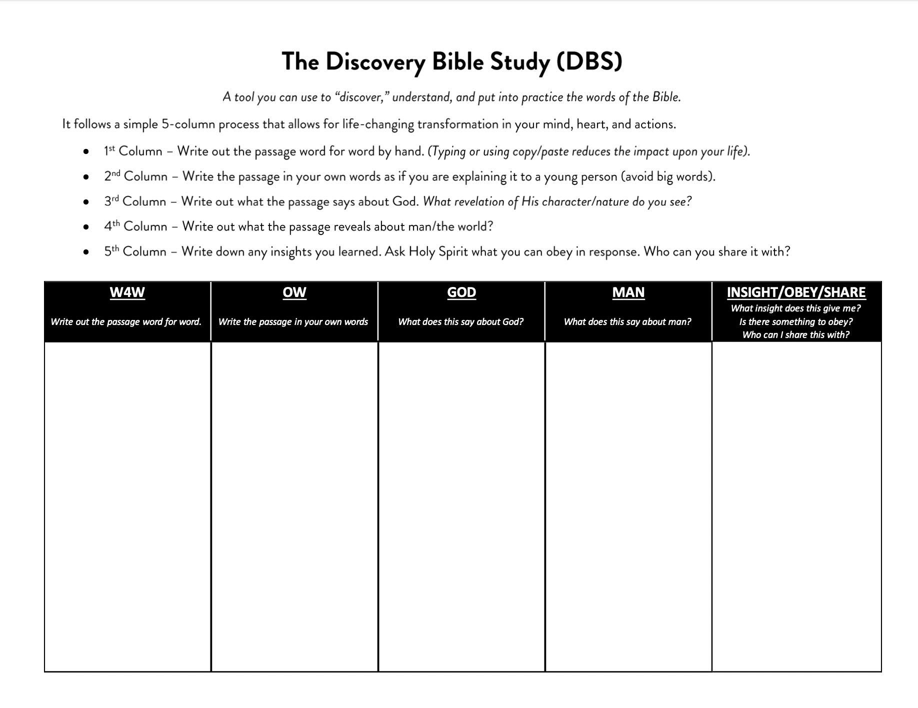 The Discovery Bible Study (DBS)